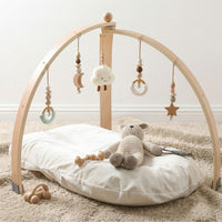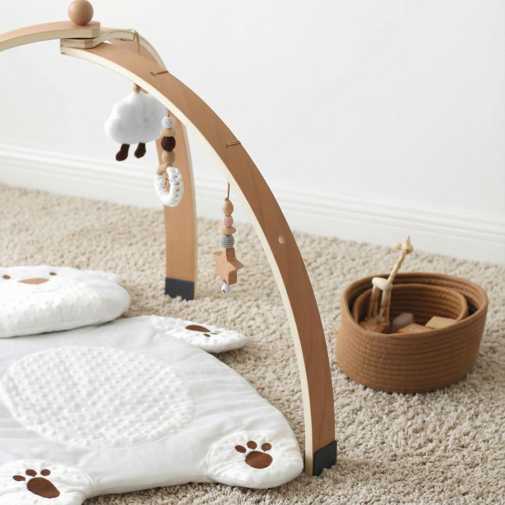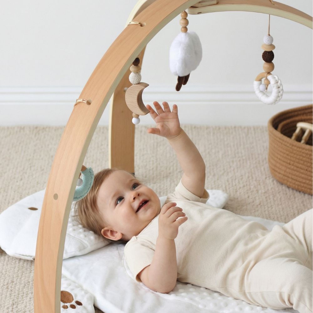 Der Spielbogen eignet sich ideal ab der Geburt und begleitet dein Baby bis ins Krabbelalter.